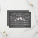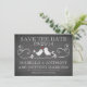 Annonce de mariage chic et tendance sur un tableau noir vintage avec une paire d'oiseaux amoureux avec un cœur posé sur une branche fleurie élégante. Pour un effet encore plus spécial, le verso de nos invitations correspond à notre design de recto. Annonce de mariage moderne sur tableau noir très populaire. Timbres-poste et aimants assortis pour save the date disponibles.