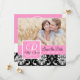 Rose, Noir et Blanc Motif Damassé Enregistrer la date avec Monogramme, Initiale et Noms Carte plate avec votre photo de fiançailles au recto et votre texte au verso. Modèle entièrement personnalisable. ELke Clarke©
