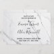 Le modèle classique en faire-part de mariage présente une texture en marbre de Carrare sur l'avant et un message personnalisable à l'arrière. Vous pouvez le personnaliser avec le bouton customiser. Envoyez votre message faire-part de mariage à vos amis et à votre famille en utilisant cette belle carte. Les produits correspondants pour cet ensemble de faire-part de mariage sont une sauvegarde de la carte de date et de la carte postale, une invitation à la répétition, réception Invitation, carte de remerciements, menu mariage, cartes RSVP, cartes de remerciement et diverses encarts d'invitation.