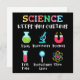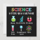 Playful science artwork made for curious kids and young students. Cute symbols like flask, microscope, magnet, test tube, magnifying glass and atom help children explore science in a fun and easy way. Ideal for school, learning and discovery.