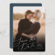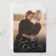 Une conception simple et élégante avec vos détails mariages alignés en bas, cette photo verticale enregistrer la date dispose de délicat, ethérée script écrit à la main. Personnalisez avec vos noms, votre date de mariage et votre emplacement, et ajoutez des détails supplémentaires au dos.