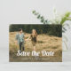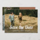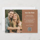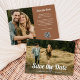 Ce mariage à la mode et vintage style enregistrer les cartes de date comporte un script blanc rétro sur le devant comme une superposition sur votre photo. Le dos a un boho, marron en terre cuite texte arrière - plan et crème d'ivoire, et une autre photo, avec un code QR scannable pour ajouter votre site mariage.