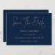 Classy Minimalist Navy Blue Gold Script Mariage. Une élégance simple avec Save The Date dans un script moderne.Le reste du texte que vous pouvez facilement personnaliser. Montré ici en or sur bleu marine, cependant le texte et les couleurs arrière - plans peuvent être changés si vous le souhaitez via l'option customiser plus loin.