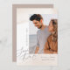 Une éthérée et aérée enregistrer la conception de la date avec une photo verticale alignée à droite, avec des oscillations d'aquarelle neutre en haut et en bas. "Save the Date" apparaît dans le coin inférieur gauche du script de calligraphie grise. Personnalisez avec votre date, vos noms et votre emplacement mariage, et ajoutez des détails supplémentaires comme votre site Web mariage à l'arrière.