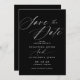 Simple et élégant, enregistrez les dates avec le texte "Save the Date" dans un script d'inspiration vintage. Contraste de police blanche sur un arrière - plan noir.