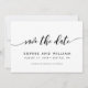 Stylish Save the Date card avec les mots "Save the Date" dans un script de relaxation cursive en noir contre un arrière - plan blanc. La carte comprend un côté noir arrière avec des lignes blanches qui se chevauchent. Personnalisez-le en remplaçant le texte de l'espace réservé. Pour plus d'options comme changer la police et sa taille/couleur ou l'espacement entre les lettres cliquez sur le bouton "Personnaliser". *Veuillez noter que le filigrane Zazzle qui apparaît dans l'aperçu du zoom n'apparaîtra PAS sur le produit imprimé final. © Bois de rose et agrumes