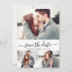 Élégant minimaliste Calligraphie Script 3 Photo Collage Wedding Enregistrer les Cartes de Date en noir et blanc. Ce design extrêmement délicat est conçu spécialement pour les mariages modernes, rayonnant d'un charme romantique enchanteur. Avec son gracieux collage de 3 photos en grille et sa charmante police de caractères en écaille, ces cartes incarnent l'élégance contemporaine. Customisez facilement ces cartes avec vos précieuses photos et détails mariages, façon raffinée d'annoncer et de célébrer votre journée spéciale.