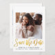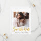 Mariage moderne minimal enregistrez la carte de faire-part date avec deux de vos photos (1 sur le devant, 1 sur le dos), "Save the Date" écrit dans un script style or faux feuille et votre date mariage, le lieu et les informations du site Web dans une simple typographie.