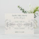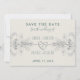 Elégant simple sauge vert calligraphie script mariage enregistrer la date invitation avec photo à l'arrière, simple coeur de corde argent et dentelle dorée fleurie.