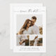 A Modern Elegant Script 3 Photo Collage enregistrer la carte de date avec une grille moderne simple avec 3 images sur le devant. Le verso contient du texte pour plus de détails. Cliquez sur le bouton Personnaliser pour customiser ce design avec vos photos et vos détails.