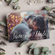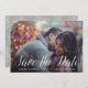 Un mariage élégant enregistrer la carte postale de date conçue pour accueillir votre photo fiançailles horizontale ou paysagère préférée. "Enregistrer la date" apparaît dans un script de calligraphie à la main blanche avec vos noms, date mariage et emplacement en dessous. Les cartes retournent à un motif botanique subtil avec de l'espace pour inclure votre URL de site mariage ou toute information supplémentaire que vous choisissez. Vous pouvez modifier la couleur arrière en cliquant sur Customiser/Personnaliser, puis en sélectionnant une nouvelle couleur arrière - plan dans la palette ou en entrant un code hexadécimal de couleurs.