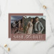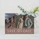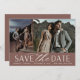 Une carte de date moderne permet de sauvegarder deux photos fiançailles (une verticale et une horizontale) alignées côte à côte. "Enregistrer la date" apparaît en dessous dans les lettres chic bloc et script, ainsi que vos noms, date mariage et emplacement du mariage. Les cartes sont inversées pour révéler d'autres détails enregistrer la date.
