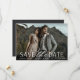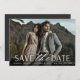 Une carte de datation moderne conçue pour accommoder votre photo de fiançailles à fond à orientation horizontale ou paysagère préférée. "Enregistrer la date" apparaît près du bas de votre photo en bloc blanc et en écriture de script, avec vos noms, date mariage et emplacement du mariage sous. Les cartes postales sont inversées pour afficher les détails de la date d'enregistrement supplémentaires.