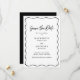 Save the date | Carte Mariage noir et blanc avec cadre Wavy Donnez le ton de votre fête avec cette carte chic noir et blanc Save the Date, conçue pour les couples qui aiment le style minimaliste avec une torsion ludique. Un cadre ondulé dessiné à la main entoure le script manuscrit "Save the Date", ajoutant chaleur et personnalité à la disposition propre. Une élégante typographie serif apporte une touche de charme rétro, tandis que les noms du couple et les détails de l'événement sont soigneusement arrangés pour une lisibilité moderne. L'envers est doté d'un arrière - plan noir solide, un contraste audacieux qui garde le design élégant et impactable. ✨ Cette carte Save the Date est entièrement personnalisable avec vos noms, date du mariage, emplacement et détails personnels. Parfait pour les mariages décontractés, contemporains ou à cravate noire. Disponible en plusieurs types de papier pour convenir à votre vision et laisser une impression durable.