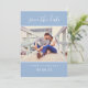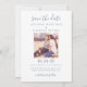Un mariage à deux côtés simple et élégant, sauvegardez les cartes de faire-part de date comprennent deux photos fiançailles et un texte personnalisé moderne. Personnalisez le libellé du modèle de carte sur le devant et le dos de la carte pour votre grand jour. Vous pouvez customiser la couleur de texte bleu/bleu nuage et la couleur de texte blanc pour la coordonner avec votre jeu de couleurs mariage.