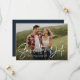 Avec une seule photo horizontale et un script moderne écrit "enregistrer la date", cette carte est la façon idéale d'annoncer votre fiançailles et le prochain mariage à vos amis et votre famille. Le texte blanc est audacieux et moderne mais toujours sophistiqué. Le texte personnalisable sur le devant a de la place pour les noms, la date, l'emplacement et d'autres informations comme un site Web mariage. Le dos est un bleu marine classique avec un mouchoir blanc étoilé. La couleur est modifiable en cliquant sur "Personnaliser".