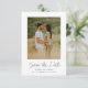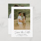 Cette photo moderne simple élégante et élégante enregistrer la date annonce caractéristiques écriture manuscrite blanc enregistrer la date, le minimum de détails de texte personnalisable et photo sur le devant. Le dos a une place pour une photo supplémentaire et un message personnel. Vous pouvez mettre à jour l'exemple de texte avec vos détails ou supprimer tous les éléments indésirables. Cliquez sur le bouton Modifier pour personnaliser cette conception en fonction de vos besoins.