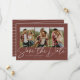 Avec trois photos verticales et un script moderne écrit "enregistrer la date", cette carte est le moyen idéal pour annoncer votre fiançailles et le prochain mariage à vos amis et votre famille. Le texte blanc chic est audacieux et moderne mais toujours sophistiqué. Le texte personnalisable sur le devant a de la place pour les noms, la date, l'emplacement et d'autres informations comme un site Web mariage. Le dos est assorti en terre cuite et en motif rayures blanches. La couleur est modifiable en cliquant sur "Personnaliser".