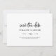Ce script rustique horizontal enregistrer la carte de date est parfait pour un mariage campagnard. Le design simple et moderne en noir et blanc présente une calligraphie manuscrite unique et fantaisiste, avec un style boho minimaliste contemporain. Personnalisable dans n'importe quelle couleur. Gardez le design minimal et simpliste, en l'état, ou personnalisez-le en ajoutant vos propres graphiques et artwork.