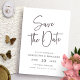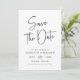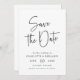 Script simple Enregistrer la date. Cette carte de mariage à écriture manuscrite minimaliste et moderne est parfaite pour les couples qui veulent faire une déclaration de style contemporain. L'élégante calligraphie associée à la palette de couleurs noir et blanc créera une sauvegarde intemporelle de vos invités n'oubliera pas. Faites une déclaration audacieuse avec ce design unique et élégant!