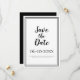 Annoncez votre prochain événement avec notre moderne et simple noir et blanc Enregistrer le mariage de date faire-part! La suite Invitation présente un design minimaliste avec une bordure à double cadre en noir tendance sur un arrière - plan blanc immaculé. Le libellé traditionnel apporte une sophistication intemporelle et moderne. Personnalisez le design mariage avec vos prénoms et votre nom de famille et la date en lettres et scripts noirs tendance. Le dos de la carte est assorti en noir massif.