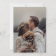 Cette carte de date simple et élégante, conçue avec de belles lettres manuscrites en écriture blanche, est parfaite pour s'adapter à votre photo fiançailles orientée portrait préférée. Vous pouvez customiser l'avant avec vos noms et votre date de mariage, ainsi que l'arrière avec des détails supplémentaires.