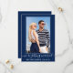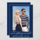 Calligraphie moderne tendance Script Couple Photo Nous nous marions Enregistrer la date Faire-part Fiançailles - Marine Bleu