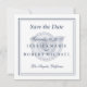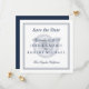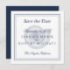 Texte bleu marine avec bordure classique au-dessus du coquillage. Faites une déclaration en gras avec cette non-photo enregistrer la date. Elégant et simple "enregistrer la date" sur une invitation au format carré. Détails sur votre mariage sur le devant avec l'adresse du site sur le dos. Customisez plus loin avec tous les détails que vous souhaitez.
