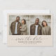 This wedding save the date design features a split layout with two rectangular photo placeholders, each showing individuals against a textured concrete wall. The color palette includes muted earth tones like beige and soft gray, creating a warm and inviting atmosphere. Elegant script and serif fonts highlight the "save the date" message, adding sophistication to the minimalist style. The overall mood is serene and romantic, perfect for capturing genuine moments in a modern yet timeless way.