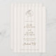 Featuring a beautifully hand-painted watercolor shell at the top, this unique monogram can be customized with the initials of the bride and groom, adding a touch of intimacy and elegance to your wedding stationery. Whimsical handwritten font elements add a personal and playful touch to your announcement, complementing the minimalist design and inviting your guests with warmth and style. Emphasizing simplicity and elegance, the overall layout is clean and uncluttered, allowing the watercolor shell and your wedding details to shine. This minimalist approach ensures that your invitation is both stylish and timeless. The text is presented in a classic taupe, providing a sophisticated contrast against the soft striped background. However, you can easily change the font color to match your wedding theme, ensuring a cohesive look throughout your stationery.