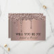 Serez-vous ma servante d'honneur ? Douche nuptiale. or rose, gouttes de parties scintillant, étincelant, lunatique, élégant, moderne, script, Mariage enregistrer les invitations de date. Veuillez le personnaliser avec vos détails.