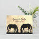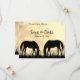 Ce faire-part mariage Save the Date présente deux chevaux silhouettes qui broutent en champ au coucher du soleil.
