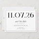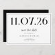 Un simple et moderne enregistrer la carte de date. Personnalisez ce design chic noir et blanc pour avoir votre date mariage, les noms et les détails.