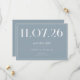 Un simple et moderne enregistrer la carte de date. Personnalisez ce design chic bleu et blanc poussiéreux pour avoir votre date mariage, les noms et les détails.