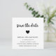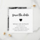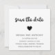 Minimaliste enregistrer la carte de date avec un design simple avec les mots, "enregistrer la date" dans une police de script manuscrite épaisse et un coeur au-dessus de vos détails de l'événement. Le côté arrière a votre photo préférée ou vous pouvez supprimer l'image modèle pour la laisser vide en cliquant sur le bouton "personnaliser". Tous les éléments de conception sont noirs sur un arrière - plan blanc. Une façon moderne et élégante d'annoncer la date de votre prochain mariage.