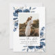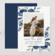 Share your exciting news with this elegant navy blue and silver watercolor floral photo Save the Date card. Featuring a beautiful floral botanical design with soft watercolor details and romantic calligraphy script, this card is the perfect blend of modern style and timeless elegance.