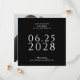 Un mariage simple, élégant et de bon goût enregistrer la carte de date en noir avec du texte blanc et comprend une photo du couple heureux sur le côté arrière de la carte. Le modèle de texte en blanc est facile à remplir avec vos informations et la date est affiché en gros texte en gras pour aider vos futurs invités mariages à planifier pour votre grand jour. La forme carré unique de cette carte ajoute un style moderne et feuille une belle impression pour vos destinataires.