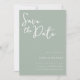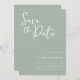 Une simple élégance enregistrer la carte de date. Personnalisez ce design moderne minimaliste vert et blanc à la sauge pour avoir vos détails personnels et message.