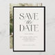 Simple Elegant Black White Script Photo Save the Date dispose d'une bordure solide, entouré d'un type moderne qui comprend un script de calligraphie.