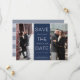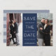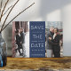 Moderne enregistrer la date carte photo caractéristiques sans serif et italique lettrage en blanc immaculé, avec vos noms, date mariage et emplacement entrecoupé par "enregistrer la date". Le texte est centré sur un arrière - plan bleu marine riche qui divise deux de vos photos préférées de fiançailles vertical ou portrait. Personnalisez avec vos informations d'invitation et/ou le site Web mariage le long du bas. Un choix chic de dates pour les couples modernes avec une esthétique minimaliste.