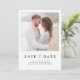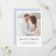 Envoyez vos annonces fiançailles dans le style avec ce mariage simple, moderne et élégant Save the Date, avec typographie de script à la main moderne, jumelé avec des polices serif élégantes. Votre photo de fiançailles préférée est bien visible et a une bordure délicate en bleu clair. L'arrière de l'invitation présente une jolie texture bleu clair, et votre site mariage, informant les clients que le faire-part de mariage formel suivra. Copyright Anastasia Surridge, tous droits réservés.