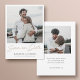 À l'avant, ce mariage photo moderne simple et élégant enregistrer la date plat modèle de carte comprend vos prénoms, date et paramètres régionaux mariages sous votre photo et un message unique 'Save our Date' en écriture manuscrite que nous avons écrit d'abord à la main et ensuite adapté pour cette carte. Le texte 'Save our Date' est un élégant ton doré appelé California Gold, et vos détails ci-dessous sont un noir légèrement adouci. L'élément de conception 'Save our Date' ne peut pas être modifié, car il s'agit d'une image. Mais vous pouvez modifier la couleur, la taille ou la police de n'importe quel autre texte de chaque côté. L'arrière de la carte comprend de l'espace pour une deuxième photo et votre message personnalisé à l'arrière La couleur de texte par défaut du texte à l'arrière est noire. Vous pouvez choisir de supprimer quelque chose ou de modifier un champ de texte sur le devant ou de revenir à un message entièrement différent. L'arrière - plan des deux côtés est défini comme transparent pour laisser la couleur du papier servir simplement de tonalité de base, mais vous pouvez modifier ceci et choisir une couleur spécifique sur un ou les deux côtés si vous préférez. Nous avons ajouté un échantillon de texte au verso pour vous permettre de modifier selon vos besoins. Au lieu de saisir votre propre adresse de site Web mariage, vous pouvez décider de supprimer notre exemple d'adresse de site Web et la ligne au-dessus sans remplacer ces parties de la conception. Et au lieu de modifier notre exemple de texte au verso avec votre propre message, vous pouvez également supprimer tout ce texte et laisser le verso de la carte vide sauf pour votre photo, peut-être pour écrire votre propre message à la main plus tard, ou pour envoyer sans texte au verso. Vous pouvez également supprimer notre échantillon de photo sans le remplacer si vous ne voulez pas ajouter une deuxième photo en plus de celle sur le devant. Le type de papier par défaut, matte, a une chaleur douce et résiste à l'usurpation, c'est donc un excellent choix pour écrire votre propre message. Vous pouvez modifier ce paramètre et choisir semi-brillant ou mettre à niveau vers un autre type de papier à la place. Dans n'importe quel coque, n'oubliez pas de supprimer tous nos exemples de texte des deux côtés ainsi que nos exemples de photos. Customisez cet élégant mariage moderne de deux photos enregistrer la date carte plat modèle avec les outils d'édition intuitifs, vos photos préférées et votre inspiration et en faire le vôtre unique!