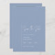 Un simple mariage enregistrer le faire-part de date en bleu assez poussiéreux, avec le titre "enregistrer la date" en blanc moderne police manuscrite. Au verso, ajoutez votre photo et votre site web mariage, avec le code QR.