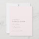 Cette carte Save the Date présente un design simple et romantique dans une palette de couleurs rose rose pâle et douce. Le style minimaliste ajoute une touche d'élégance à votre faire-part spéciale, ce qui le rend parfait pour les mariages, les fiançailles ou tout autre événement important. Les teintes délicates et le design sobre font de cette carte un choix intemporel qui impressionnera vos invités et donnera le ton de votre prochaine célébration.