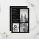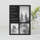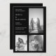 Un collage photo moderne sauvez la carte de date avec une mise en page simple et minimaliste avec trois photos et les détails de votre mariage en texte blanc aligné gauche sur un arrière - plan noir. Ces élégantes dattes sont un ajout élégant à un mariage tendance.