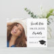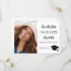 Avant : Ajoutez votre propre photo de taille verticale du diplômé. Un fond blanc chic, texte noir. Modèles pour un nom et une date. Le nom et le texte : Sauvegarder la date sont écrits avec un style de lettre manuscrit moderne. Avec une casquette, un pompon dessus.
