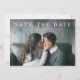 Ces cartes de save the date simples et élégantes présentent votre photo pleine page, ainsi que du texte serif blanc classique et un dos gris clair.