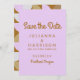 Annoncez votre journée spéciale grâce à ces cartes modernes et design ! Doté d'un front de lavande douce et d'une typographie dorée audacieuse, ce design est à la fois élégant et ludique. L'arrière présente un motif géométrique contemporain en or et blanc, ajoutant une touche unique et artistique. Parfaites pour donner le ton à votre mariage, ces cartes sont personnalisables avec vos noms, date et emplacement. Disponible sous forme de fichier téléchargeable pour un partage aisé ou sous forme de cartes professionnelles pour une touche polie et mémorable. Une façon chic de s'assurer que vos invités marquent leurs calendriers pour votre grand jour!