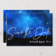 Sous les étoiles Blue Night Sky Typographie Mariage Enregistrer la date. Annoncez votre grande journée dans le style avec ces Blue Night Sky Typography Flat Enregistrer la Carte Date. Arrière - plan du ciel nocturne Sauvegardez les cartes de dates pour un mariage thématique "sous l'étoile". Customisez-le en changeant les noms de la mariée et du marié et la date du mariage. Pour toute personnalisation supplémentaire, n'hésitez pas à me contacter à l'adresse mypaperlove2021@gmail.com