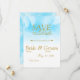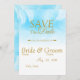 Sous le Palm Sky Save La Date est une aquarelle bleu ciel tropical avec des accents de palmier. Sur l'arrière le même bleu ciel et l'aquarelle de palmier avec les initiales pour la mariée et le marié.
